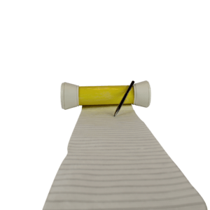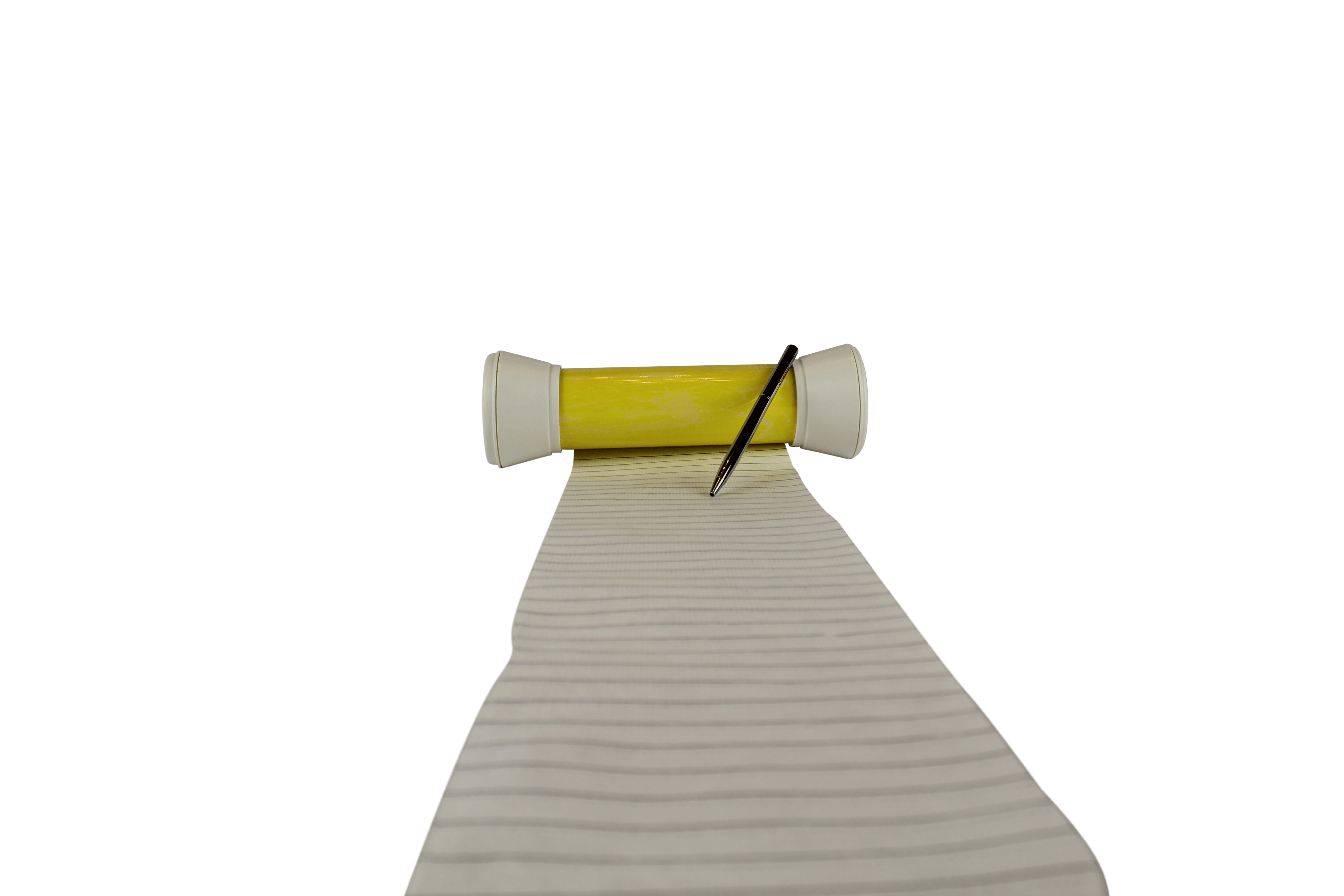 To operate simply pull the Scroll handle and extend the paper material from the device just like an ancient scroll, then record your information onto the paper with the attached writing pen. When you are done recording, simply press the rewind button and your writings will automatically rolls back into the device for safe keeping.